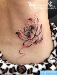 美女腰部漂亮的彩色蝴蝶结纹身图片