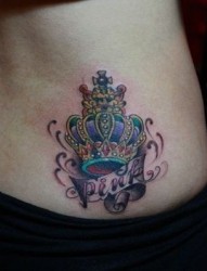 女孩子腰部流行的彩色蝴蝶结纹身图片