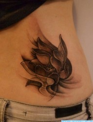 美女腰部唯美潮流的黑灰莲花纹身图片