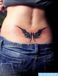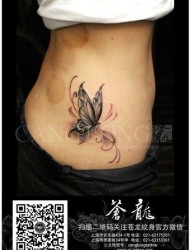 美女腰部唯美时尚的黑白蝴蝶纹身图片