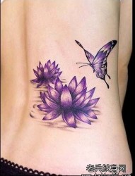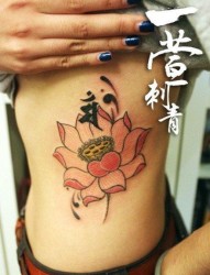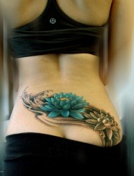 女人腰部唯美漂亮的彩色莲花纹身图片