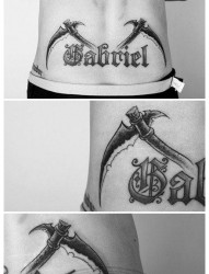 美女腰部漂亮时尚的黑白钻石与花卉纹身图片