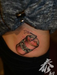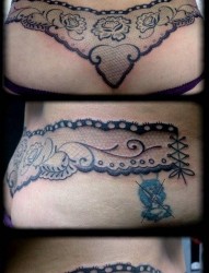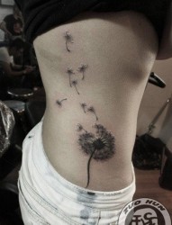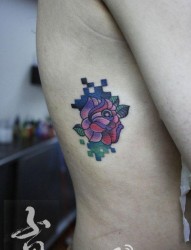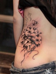 美女侧腰潮流时尚的玫瑰花纹身图片