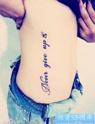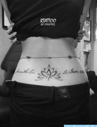 美女腰部唯美时尚的图腾莲花与字母纹身图片