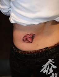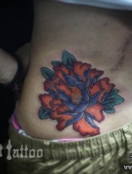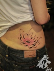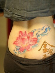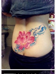 美女腰部精美漂亮的彩色红莲花纹身图片