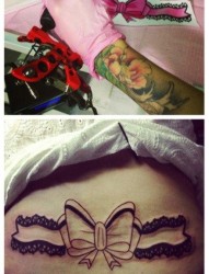美女腰部精美潮流的蝴蝶结蕾丝纹身图片