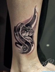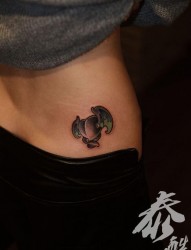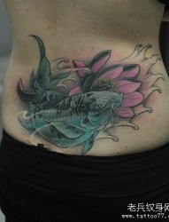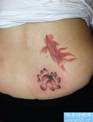 腰部莲花金鱼纹身图片由纹身520图库推荐