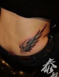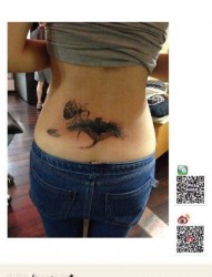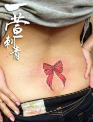 女人腰部小巧时尚的蝴蝶结纹身图片