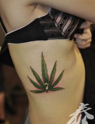 推荐美女侧侧腰上的一幅桑叶纹身图片