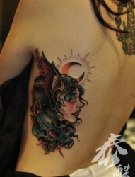 女人侧腰漂亮时尚的美女与骷髅纹身图片