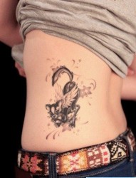 一幅侧腰猫纹身图片由纹身520图库推荐