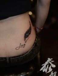 女人侧腰立体羽毛纹身图片