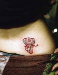 侧腰上一幅精致的大象纹身图片