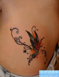 一幅女人腰部蝴蝶纹身图片由纹身520图库推荐