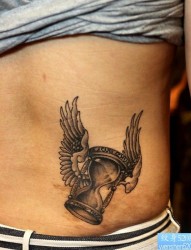 侧腰沙漏翅膀纹身图片由纹身520图库推荐