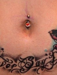 一幅女人腹部欧美燕子字母文身图片由纹身520图库推荐