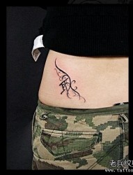 纹身520图库推荐一幅女人腰部字母纹身图片