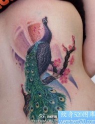 纹身520图库推荐一幅腰部彩色凤凰纹身图片