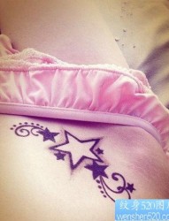 纹身520图库推荐一幅女人侧腰五角星藤蔓纹身图片