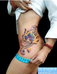 纹身520图库推荐一幅女人侧腰莲花纹身图片