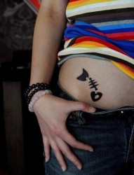 一幅女人腰部鱼骨头文身图片由纹身520图库推荐