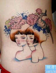 一幅个性潮流的女人腰部欧美纹身图片由纹身520图库推荐