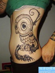 纹身520图库推荐一幅女人腰部猫头鹰纹身图片