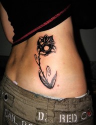 细腰美女秀腰部鲜花纹身