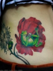 全彩玫瑰青蛙纹身图片