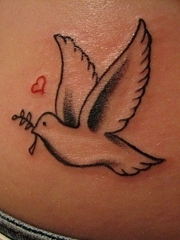和平鸽子和红心图案的纹身