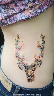 性感女性腰腹漂亮好看的玫瑰花纹身