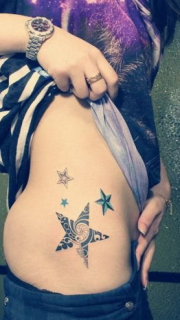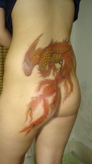 个性臀部唯美漂亮的蝴蝶和花纹身