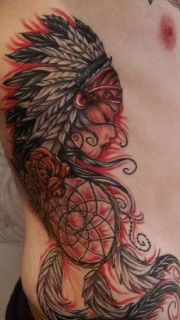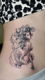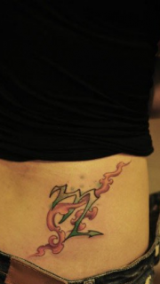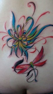 女人腰部到臀部漂亮潮流的蝴蝶花卉纹身图案