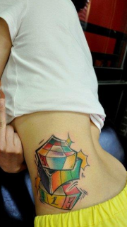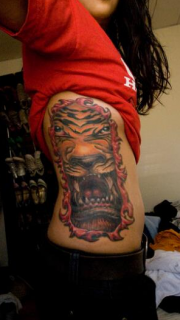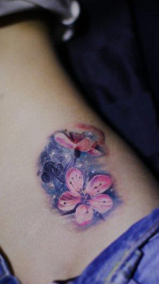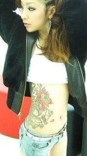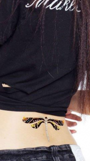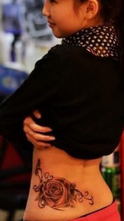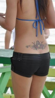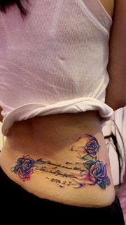 美女腰臀上蕾丝蝴蝶玫瑰纹身