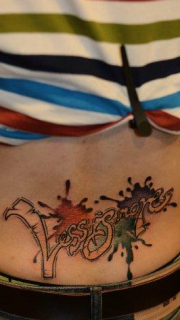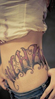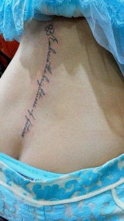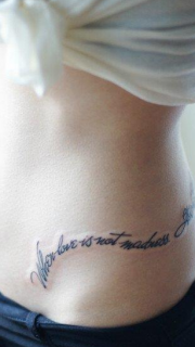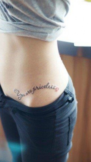 美女腰部唯美潮流的图腾莲花与字母纹身