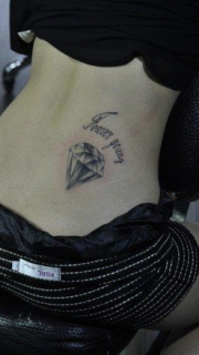 美女腰部潮流新潮的黑灰钻石纹身图案