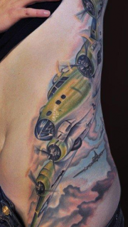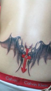 靓女腰部前卫精美的图腾蝴蝶纹身图案