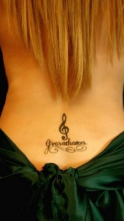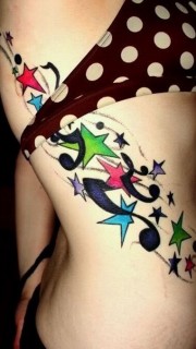 美女腰背彩色音符纹身图案