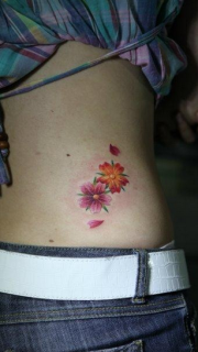 美女腰部精美小巧的樱花纹身图片
