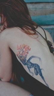 女性背部个性彩色纹身图案