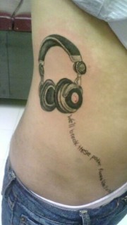 腰部个性的耳机英文纹身