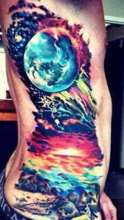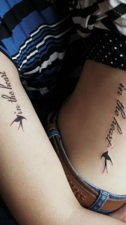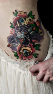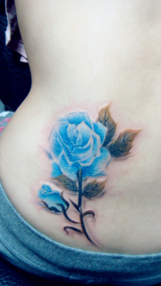 女性侧腰到腿部好看的彩色凤凰刺青作品
