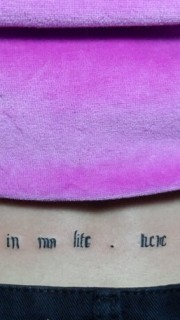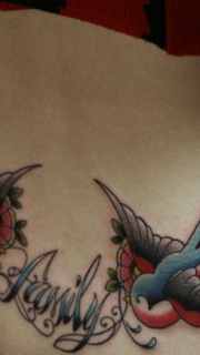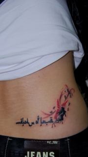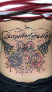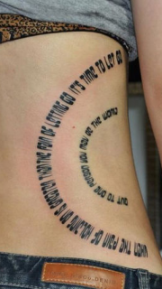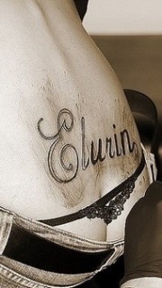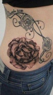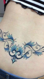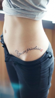 美女腰部潮流唯美的字母藤蔓纹身图案