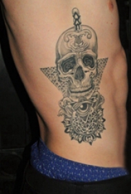 骷髅纹身 男生侧腰上沙漏和骷髅纹身图片