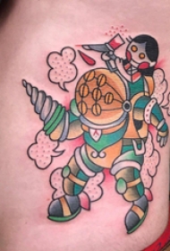 侧腰纹身图 女生侧腰上心形和米老鼠纹身图片