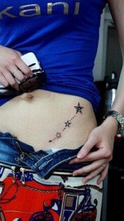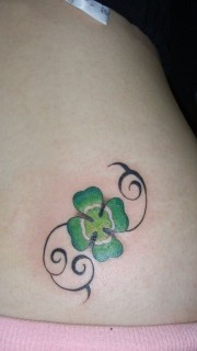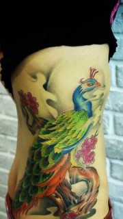 女性背部唯美漂亮音符蝴蝶朵纹身