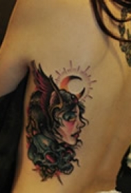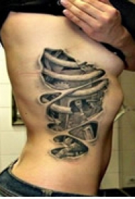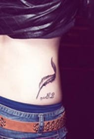 音符纹身 女生侧腰上黑色的音符纹身图片