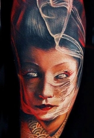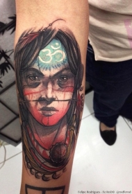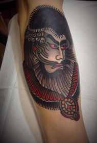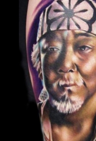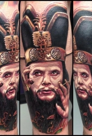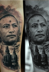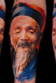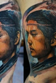 手臂彩色非常逼真的亚洲男子肖像纹身图案