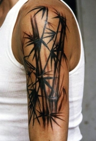 半甲亚洲东方老虎与竹子彩色纹身图案
