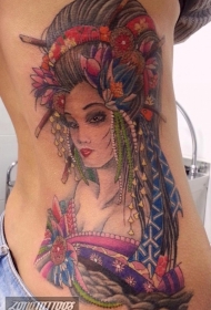 可爱的彩色亚洲艺妓画像胸部纹身图案